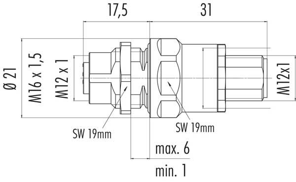 Adapter für Schaltschrankdurchführung, Stecker M12 - Dose M12