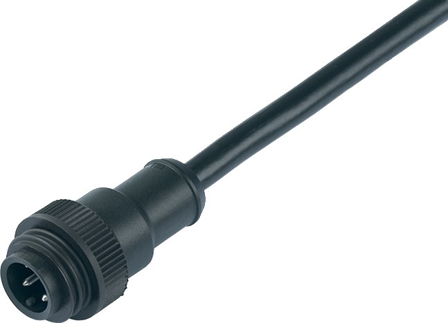 Binder Kabelstecker Serie 692 mit Schutzleiteranschluss für sichere Erdung. Wahlweise 3+PE oder 6+PE, IP67, ungeschirmt. PVC-Kabel schwarz angespritzt, 2m Kabellänge, AWG 16/18. Schraubverriegelung, Bemessungsspannung 250-400V. Ideal für Maschinenanschlüsse, elektrische Werkzeuge und industrielle Geräte mit Schutzleiteranforderung. Robuste angespritzte Konstruktion für höchste Zugfestigkeit und Dichtheit. Schwarzes Gehäuse, kostengünstige PVC-Ausführung für Standardanwendungen in Automatisierung und Maschinenbau.